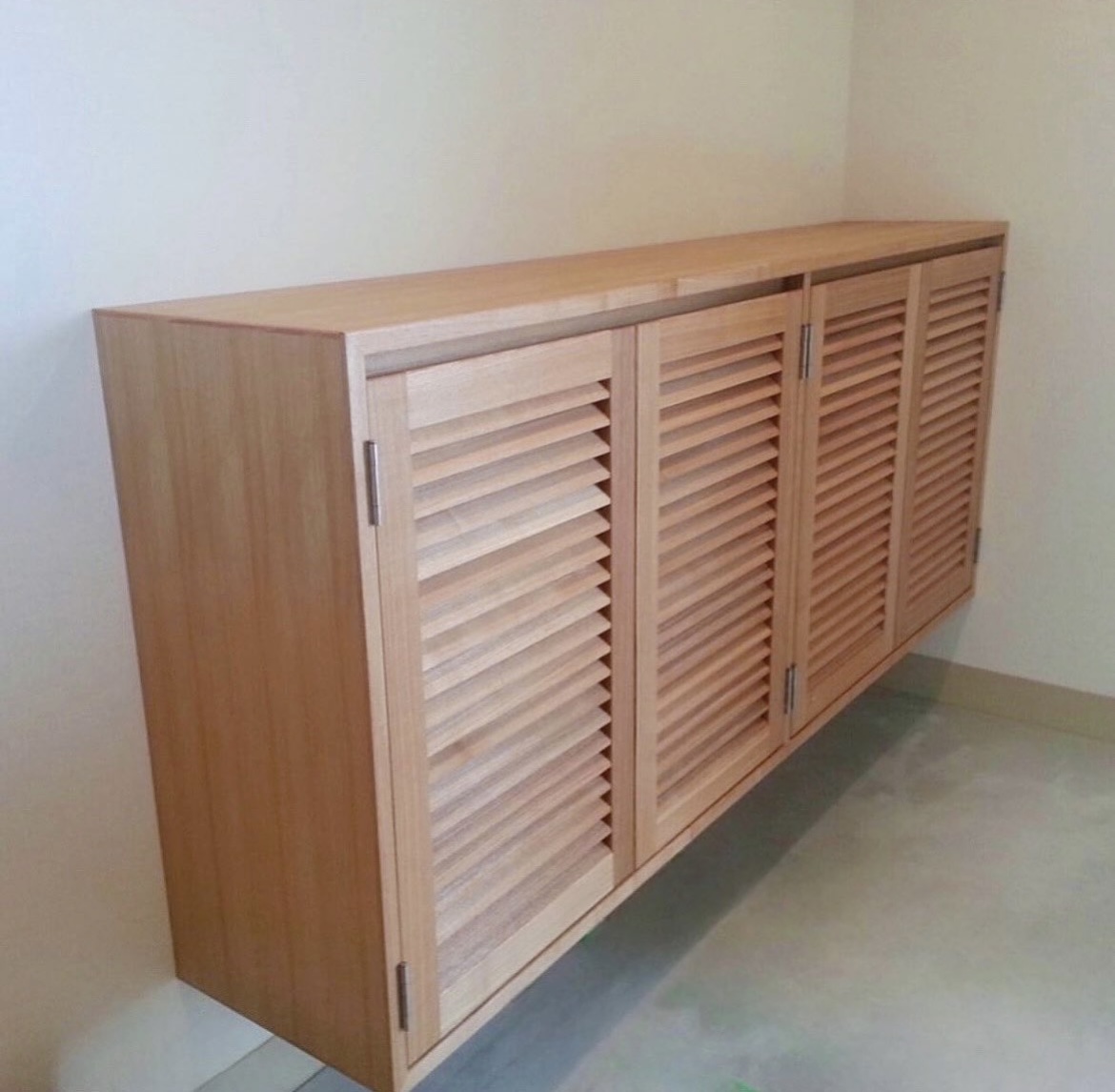 空間を広く見せる壁掛けルーバー扉の下駄箱。