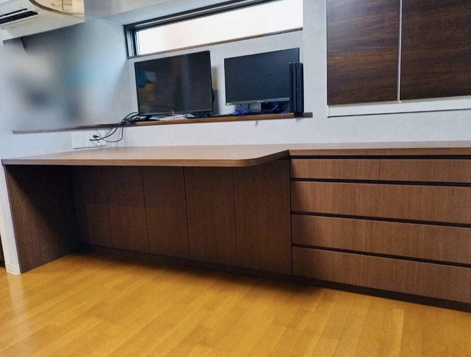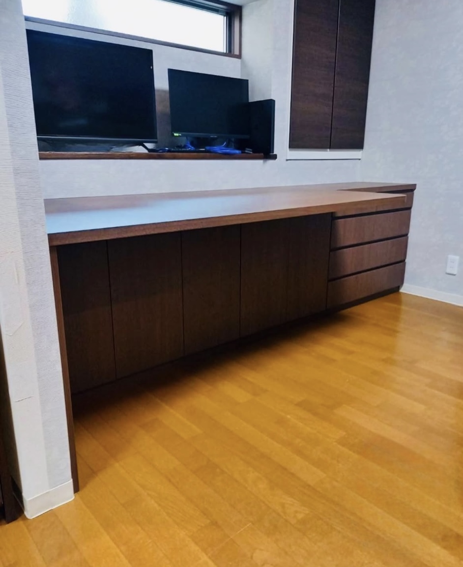 テレワーク用のパソコン機器などを新しく置ける大きなデスク。