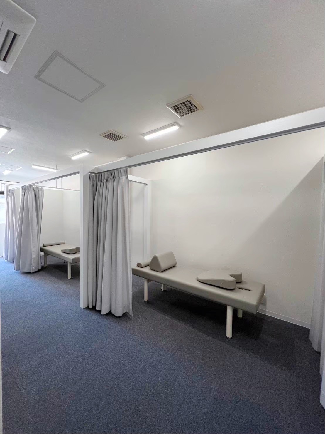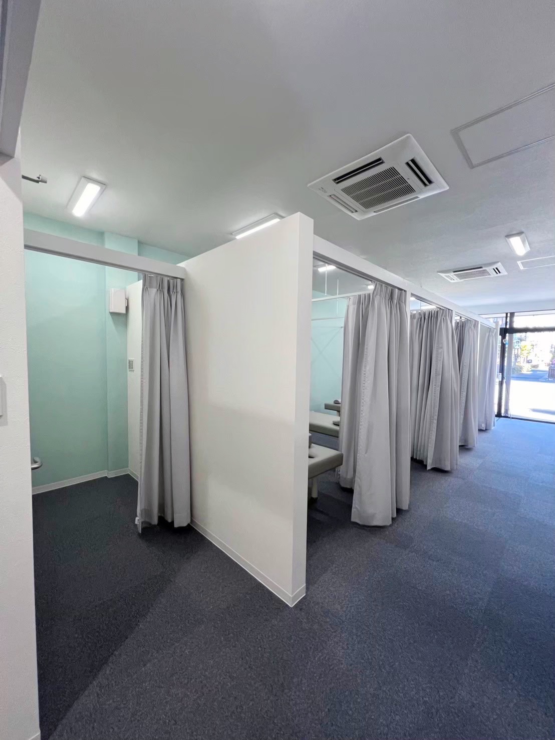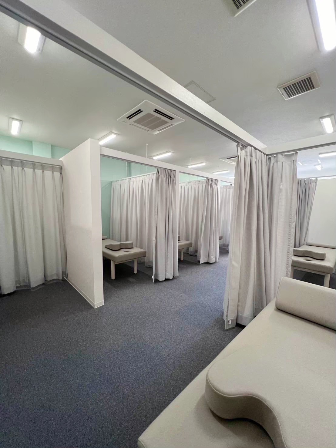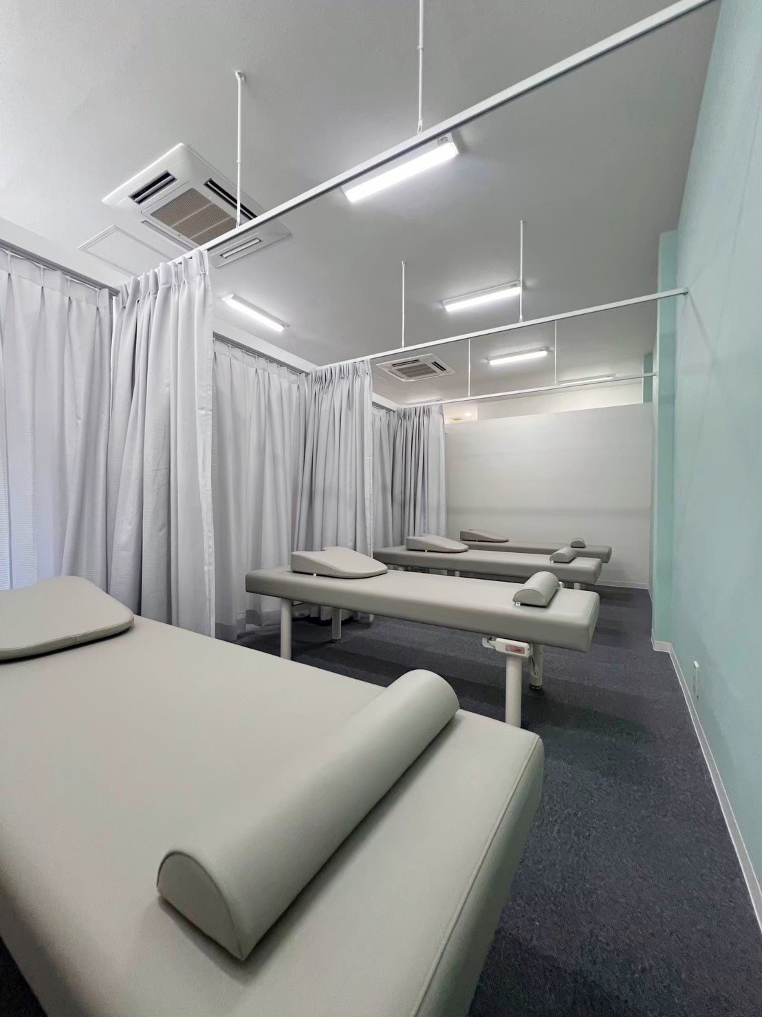目に優しいグリーンの壁に、心落ち着くカーテン越しのプライベート空間。
