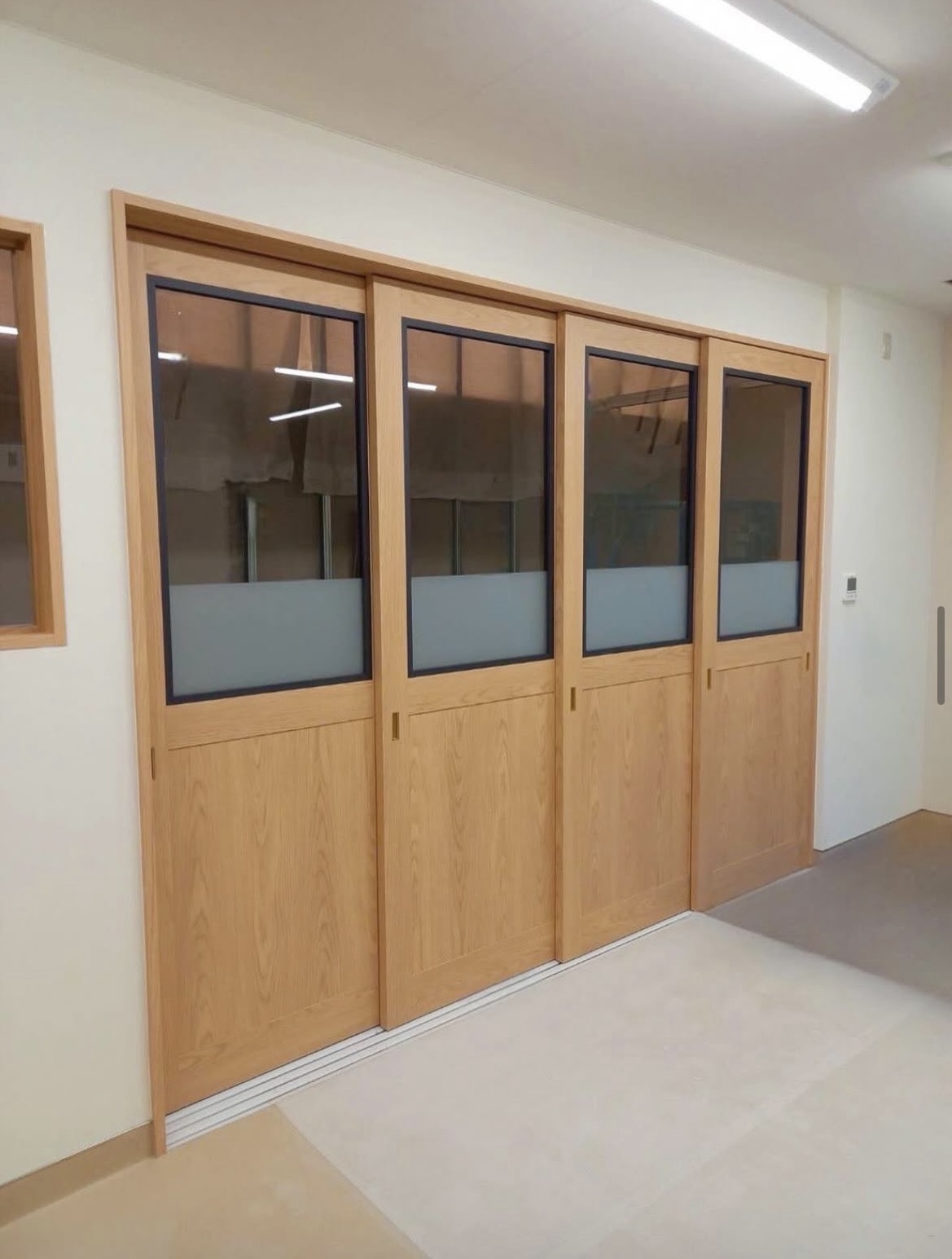 耐久性とデザイン性を両立させた、木目調メラミン框引戸。